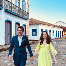 Sugerimos vestidos longos ou midi e salto bloco, ou calçados confortáveis. Considerando que parte do evento acontece no centro histórico, com ruas de pedra, e que a recepção será em um gramado.